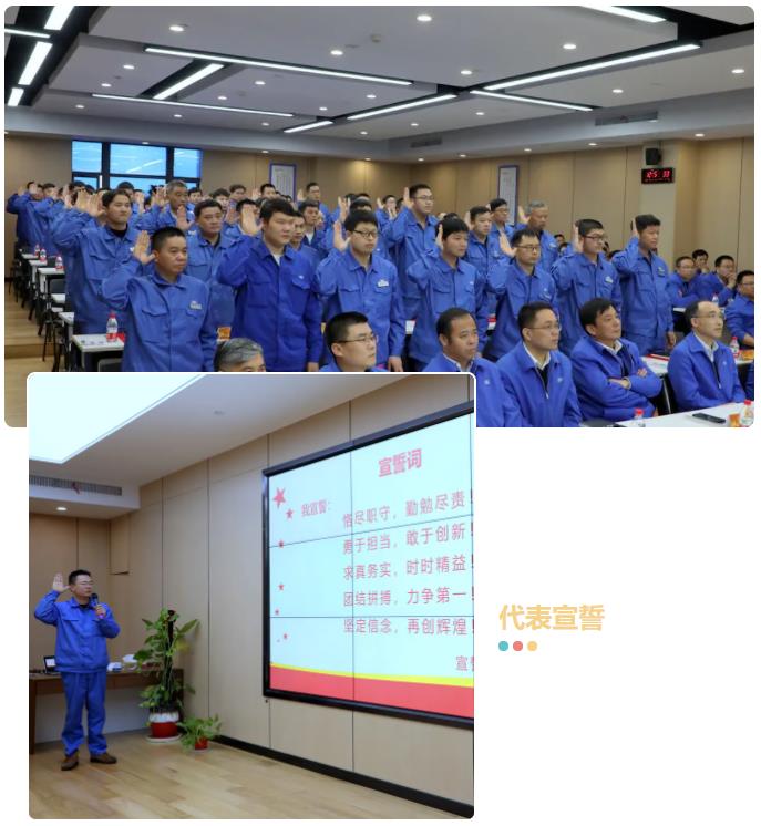 儀式上,雙良節(jié)能溴冷機事業(yè)部蒸吸筒體焊接組組長馬立,帶領新聘班組長宣誓。誓言錚錚,高亢嘹亮,現(xiàn)場對全體新聘班組長肩負使命,為雙良發(fā)展努力奮斗奉獻的表達報以掌聲和敬意。
