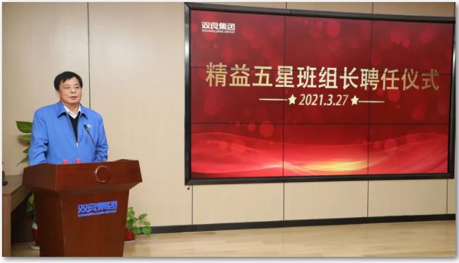 聘任儀式開場,雙良集團人力資源部總經(jīng)理繆鴻飛宣讀精益五星班組長的聘任決定。