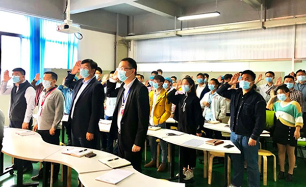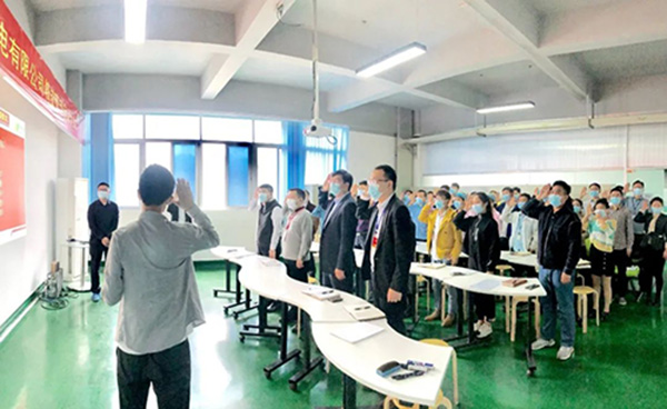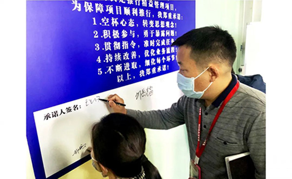 項目計劃打造四個樣板區(qū),辦公區(qū),倉庫,分容測試區(qū),包裝區(qū);每個樣板區(qū)都設(shè)定了責(zé)任人,確保項目落地。王總為每個樣板區(qū)進行授牌,與會全體人員起立并宣誓。