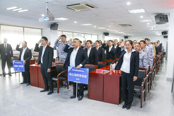 隨后,各事業(yè)部負(fù)責(zé)人帶領(lǐng)其骨干上臺(tái),向王少芳董事長(zhǎng)宣誓以表做好精益生產(chǎn)的決心,并在宣誓詞上簽字。