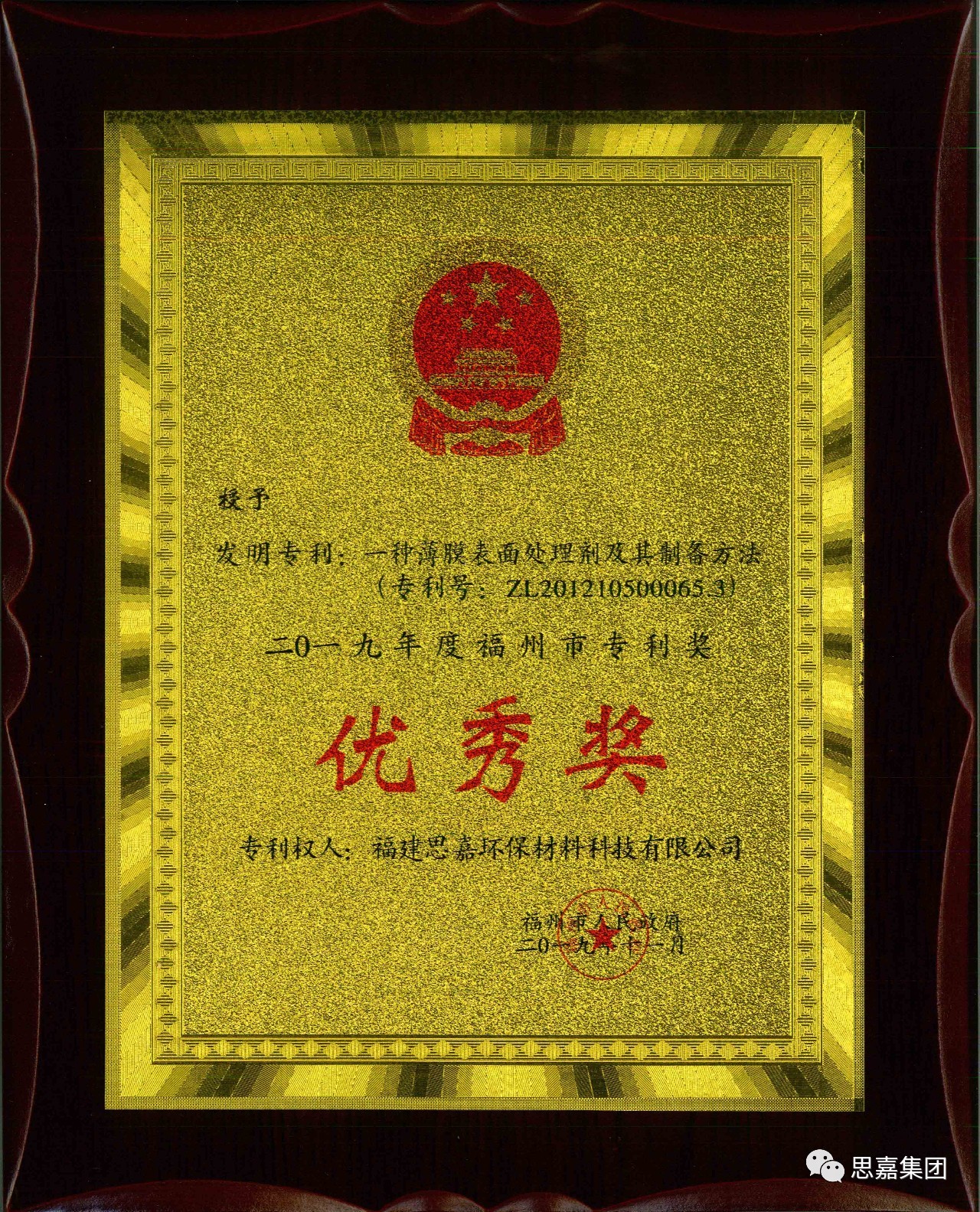 近日,福州市人民政府對被評為2019福州市專利獎的企業(yè)進行了表彰,共表彰了4家獲得金獎的企業(yè),以及包括福建思嘉在內(nèi)的23家獲得優(yōu)秀獎的企業(yè)。