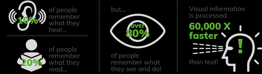 ▲ 視覺(jué)記憶效率遠(yuǎn)遠(yuǎn)大于聽(tīng)覺(jué)和閱讀,例如汽車數(shù)字時(shí)速表和表盤時(shí)速表