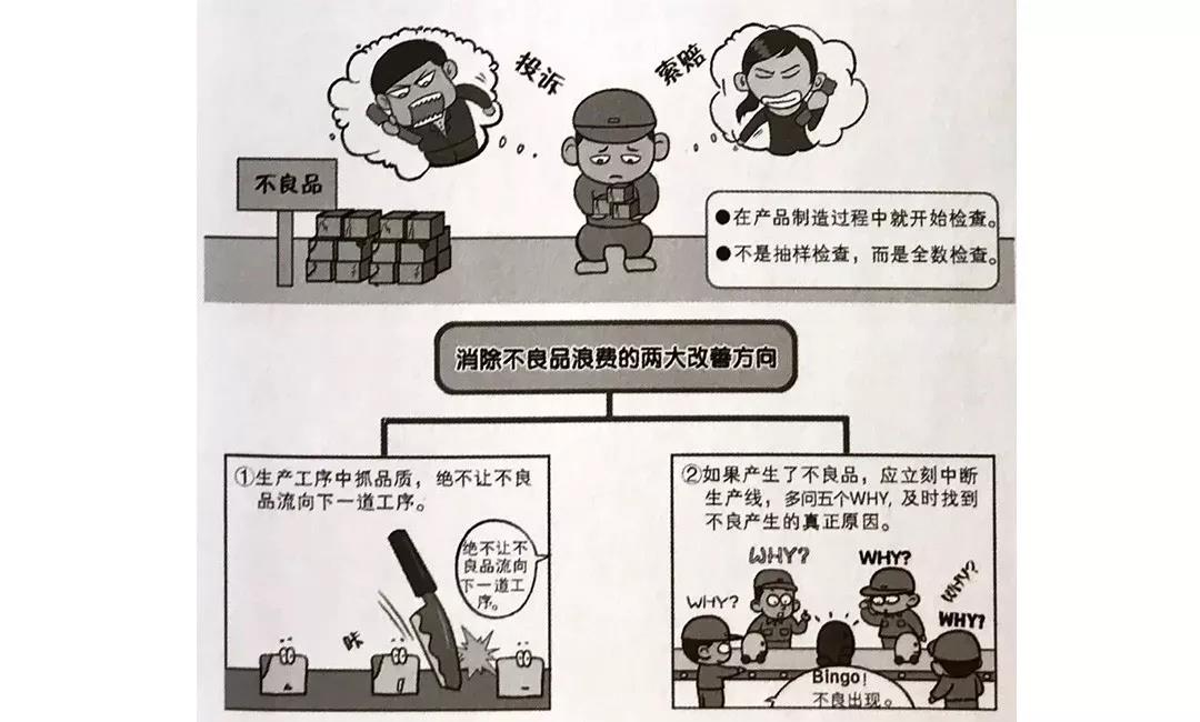 不良品浪費(fèi)是指持續(xù)生產(chǎn)出不合格產(chǎn)品, 在產(chǎn)品檢驗(yàn)、報(bào)廢或返修活動(dòng)中所造成的材料、機(jī)器和人工等浪費(fèi)。如果不良品流向市場(chǎng), 則會(huì)弓|起顧客的投訴和產(chǎn)品召回等更大的損失。消除不良品浪費(fèi)的兩大改善方向?yàn)?