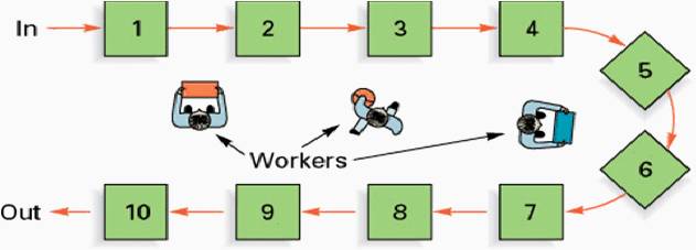 另外當(dāng)有些生產(chǎn)環(huán)節(jié)生產(chǎn)節(jié)拍時(shí)間慢于整條線的節(jié)拍時(shí)(如新人等原因),其他工位可以及時(shí)給予支援,但這要求各個(gè)員工具有多項(xiàng)崗位培訓(xùn)和操作技能。