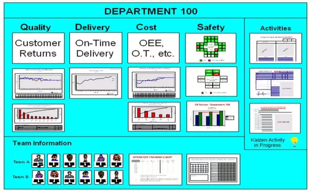 可視化將現(xiàn)場績效管理目標(biāo)很清晰地展示出來,包括品質(zhì)、交貨、成本以及安全等領(lǐng)域。公司的績效目標(biāo)被分解到生產(chǎn)一線,落實(shí)到每個(gè)班組,實(shí)際的績效表現(xiàn)數(shù)據(jù)被每月、每周甚至每天更新呈現(xiàn),所有人都能很清楚地觀察到自己每天的行為如何對團(tuán)隊(duì)的績效產(chǎn)生影響,形成績效結(jié)果測量、原因分析和改進(jìn)的閉環(huán)。這超過了任何一種復(fù)雜的績效管理體系和制度的效果,再好的績效管理制度如果不能落實(shí)到一線,只能是一句空話。