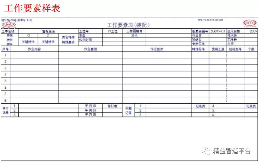 (2)工作要素表——記錄作業(yè)時“特別注意事項”的表格,是對新員工進行培訓的最好的工具: