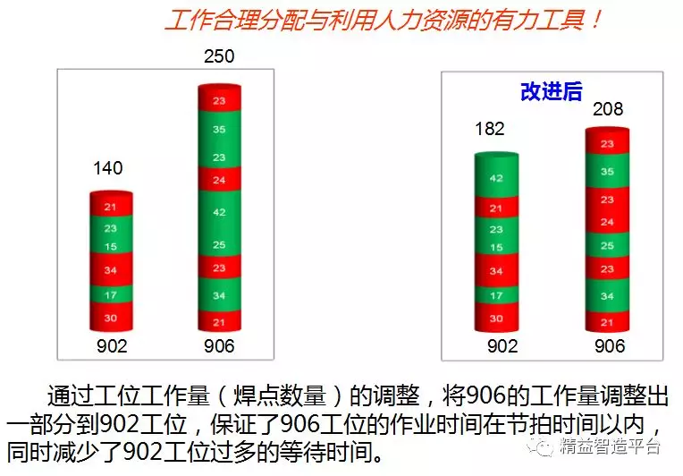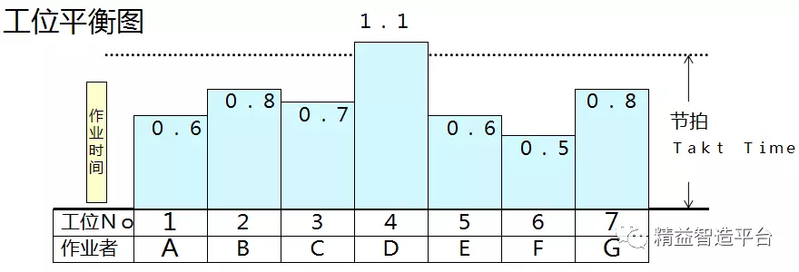 工作平衡圖以圖表方式顯示工作小組在一個工作周期中進行的所有工作要素或步驟,確認該工序是否超過或小于顧客需求速率。