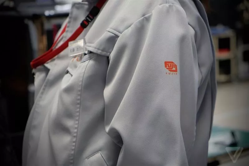 相機(jī)裝配線上工作人員衣服上面的20世紀(jì)80年代富士經(jīng)典標(biāo)志,綽號是“椿象”