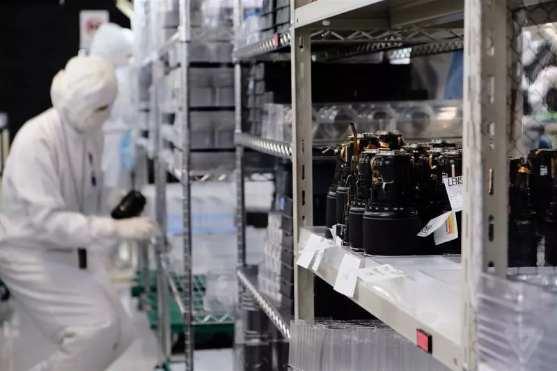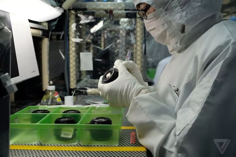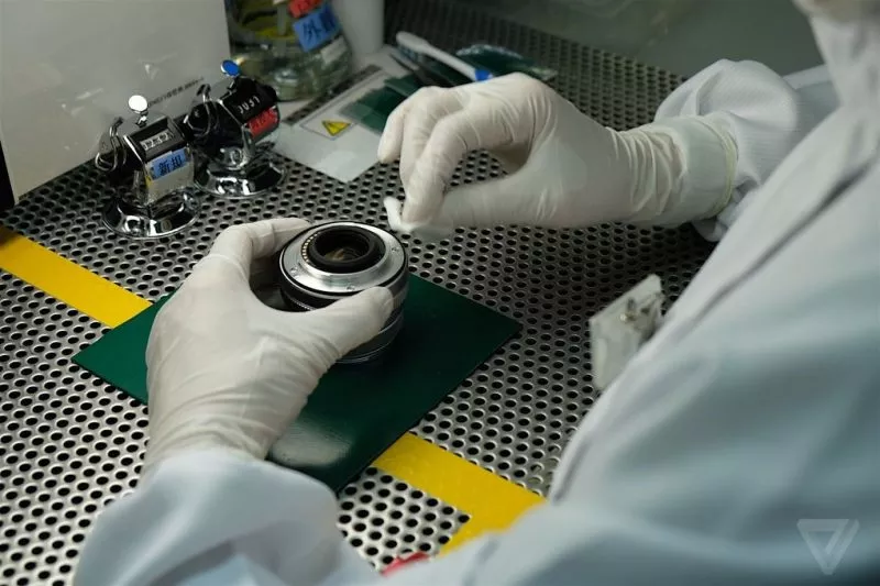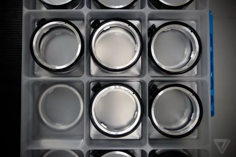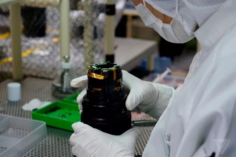 由于擔(dān)心灰塵和其他污染物,進(jìn)入鏡頭組裝區(qū)域的所有人都必須佩戴重型防護(hù)裝備,覆蓋所有衣服。我甚至不能使用相機(jī)背帶。