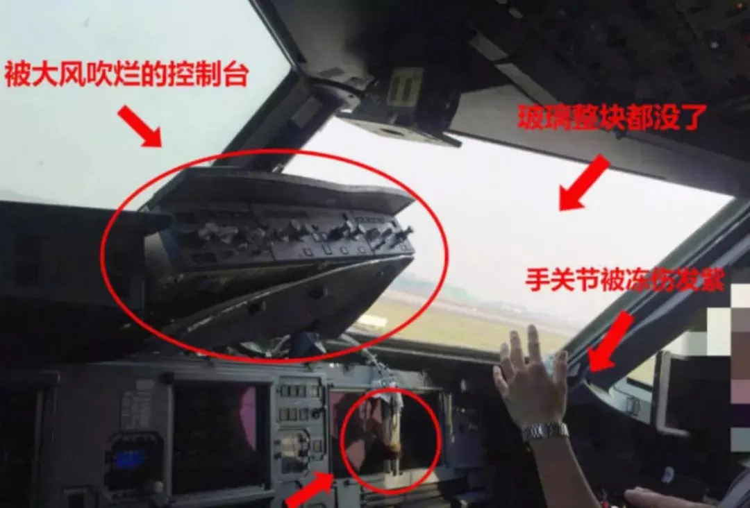當時的情況非常危急:駕駛艙右側(cè)前風擋掉落、副機長半個人已在外面,儀表盤、無線電全部中斷,高空失壓,零下40度的低溫,極度刺眼的光照。在這樣的極端情況下,機長劉傳健以其精湛的技術(shù)和準確的判斷,幫助飛機安全備降。