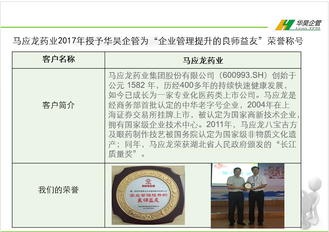 首頁 > 馬應(yīng)龍藥業(yè)授予:良師益友 來源:華昊企管 發(fā)布時間:2018-09-06 上一篇:華普環(huán)保授予:精益落地實戰(zhàn)專家 下一篇:福耀玻璃福授予:年度精益五星班組最受信賴顧問