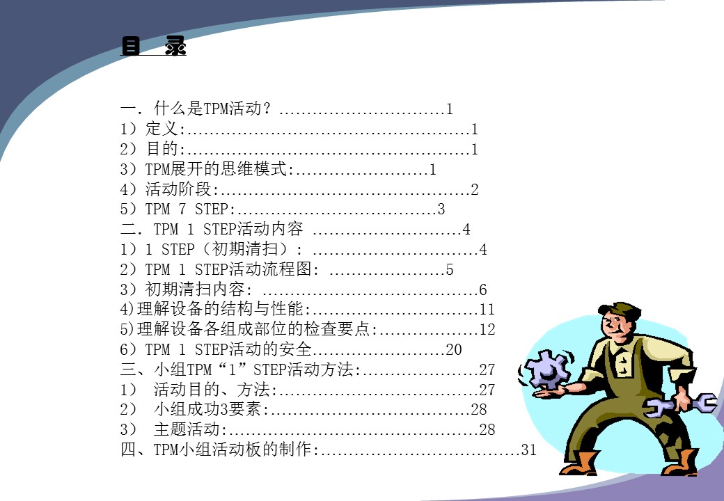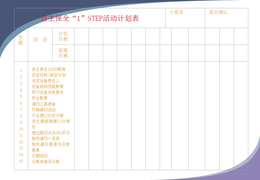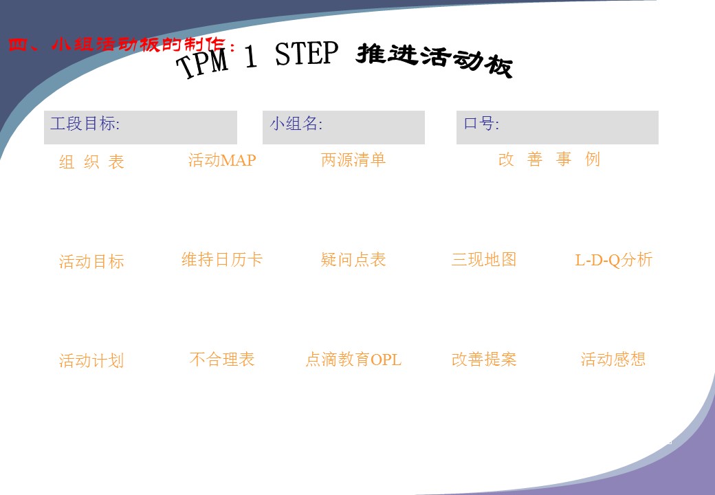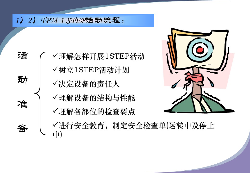 首頁(yè) > 研究與洞見(jiàn) > 方法論基礎(chǔ) TPM”1”STEP手冊(cè) 來(lái)源:華昊企管 發(fā)布時(shí)間:2017-01-05 上一篇:第四次工業(yè)革命帶來(lái)大規(guī)模失業(yè)威脅 下一篇:TPM“0”階段手冊(cè)