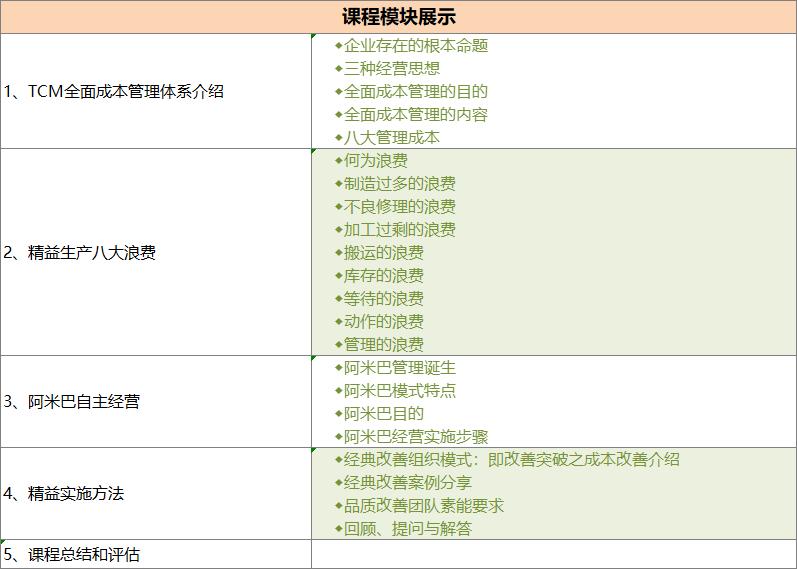 本課程在在結(jié)合現(xiàn)場(chǎng)調(diào)研的基礎(chǔ)上,系統(tǒng)地介紹TCM全面成本管理的理念、方法和工具的同時(shí),重點(diǎn)引入了一個(gè)系統(tǒng)的全景式的沙盤演練,把抽象的TCM全面成本管理理念和方法以實(shí)戰(zhàn)的方式模擬出來,包括成本分類、八大浪費(fèi)、課題管理、阿米巴經(jīng)營(yíng)等,讓參與者在參與中綜合應(yīng)用和深刻體會(huì)TCM全面成本管理的理念、方法和工具,并通過持續(xù)改善清晰的體現(xiàn)TCM全面成本管理變革帶來的巨大效益。