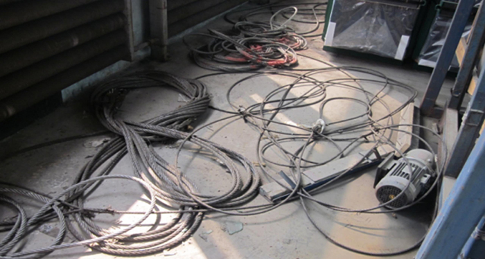(1)滿地都是散亂的鋼絲繩:是不是很容易絆倒?