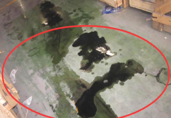 (2)滿地的叉車油污:走過去是不是會滑倒?