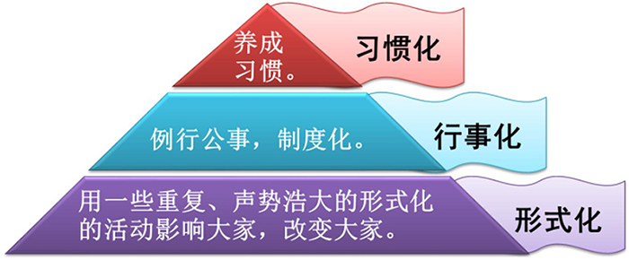 推行5 S應(yīng)經(jīng)歷三個階段:形式化——行事化——習(xí)慣化。在這個過程強調(diào)全員參與,充分發(fā)揮每一個人的才智去克服企業(yè)中的一個又一個問題。