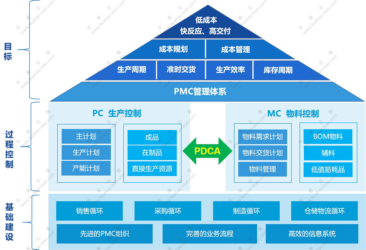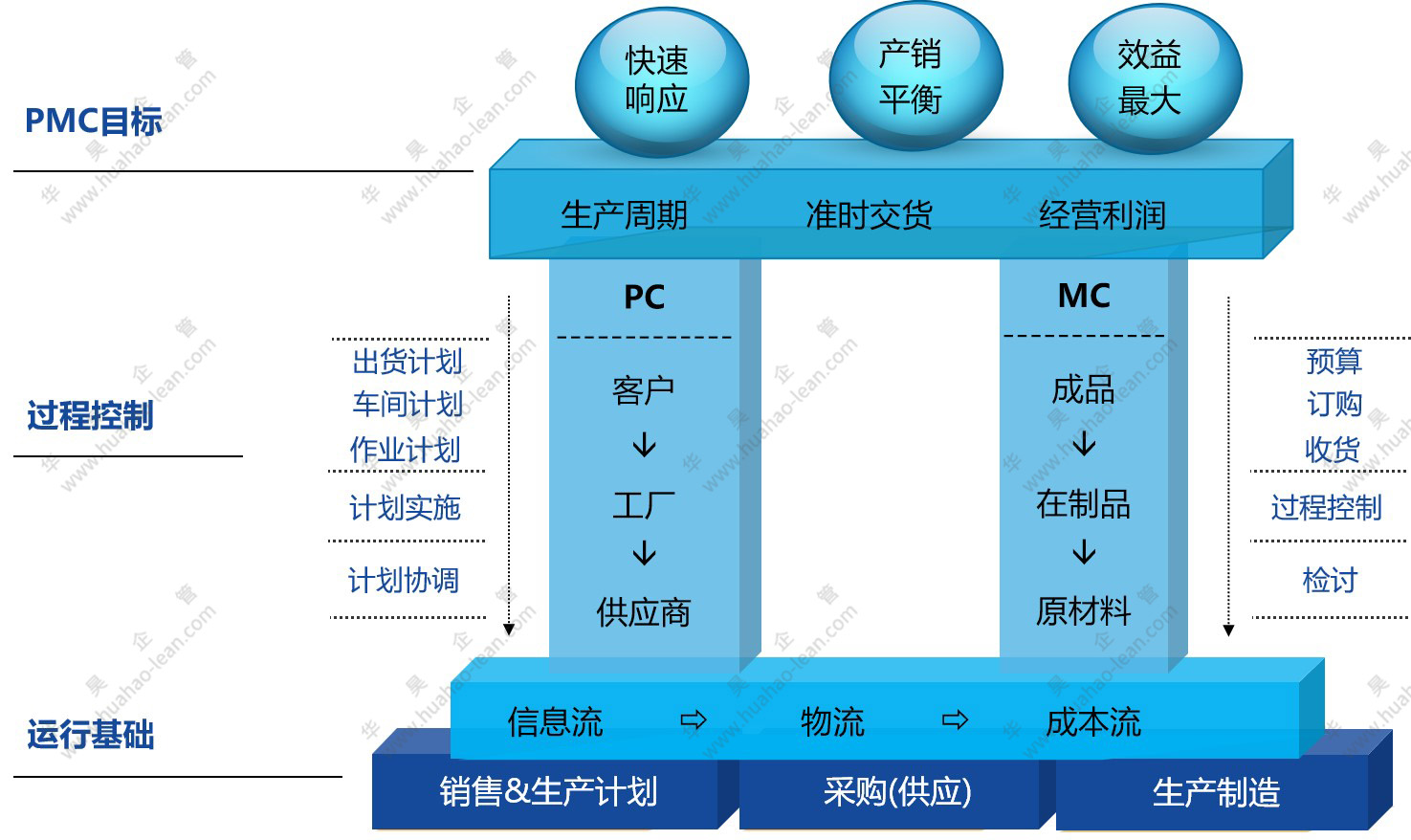 精益計(jì)劃物控PMC(Lean—Plan & Material Control)是指基于精益思想的計(jì)劃、協(xié)調(diào)及控制生產(chǎn)系統(tǒng)內(nèi)部資源,以實(shí)現(xiàn)生產(chǎn)資源利用最大化及快速響應(yīng)客戶要求的目的,進(jìn)而為企業(yè)帶來收益。其主要有兩方面的工作內(nèi)容:即PC(生產(chǎn)計(jì)劃、生產(chǎn)進(jìn)度的管理)與MC(物料的計(jì)劃、采購、跟蹤、收發(fā)、存儲(chǔ)、使用等各方面的監(jiān)督與管理,以及廢料的預(yù)防與處理工作)。它是企業(yè)內(nèi)部供應(yīng)鏈,是基于對企業(yè)內(nèi)部的實(shí)物流、信息流、資金流(內(nèi)部成本流)進(jìn)行計(jì)劃、協(xié)調(diào)及控制,是圍繞企業(yè)內(nèi)部進(jìn)行管理,是局部的供應(yīng)鏈。