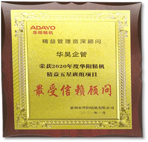 - 華陽(yáng)精機(jī)授予:精益五星班組最受信賴(lài)顧問(wèn)