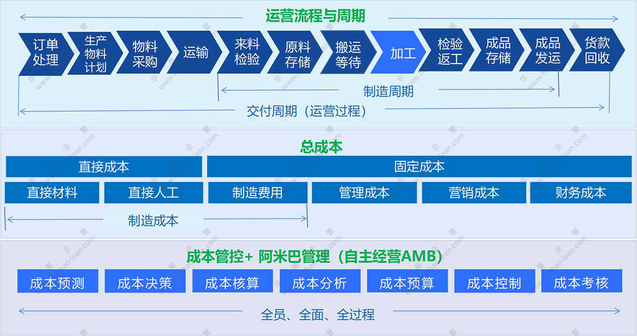 公司經(jīng)營(yíng)的核心是滿足客戶的同時(shí),實(shí)現(xiàn)盈利。持續(xù)獲得利潤(rùn)是公司永續(xù)經(jīng)營(yíng)的根本。滿足客戶取決于性價(jià)比,而價(jià)格決策來源于企業(yè)經(jīng)營(yíng)的成本。要降低企業(yè)經(jīng)營(yíng)的成本,僅僅依靠經(jīng)營(yíng)層及財(cái)務(wù)人員是不夠的。企業(yè)的全面成本管理TCM中的“全面”主要體現(xiàn)“三全性”,即全員、全面、全過程,從產(chǎn)品的生產(chǎn)管理組織流程每一個(gè)環(huán)節(jié),每一個(gè)工藝、每一個(gè)部門、甚至生產(chǎn)現(xiàn)場(chǎng)每一個(gè)工位操作工,都能參與到成本管理中。全面成本管理TCM體系就是:以成本管理的科學(xué)性為依據(jù),建立由全員參與,包含業(yè)管理全過程的、全面的成本管理體系,并匯集全員智慧,發(fā)揮全員主動(dòng)性,讓各部門全體員工自主改善不斷降低成本,使經(jīng)營(yíng)層與各部門員工具有降低成本的一致性,謀求在最低成本狀態(tài)下,進(jìn)行生產(chǎn)管理與組織運(yùn)做。